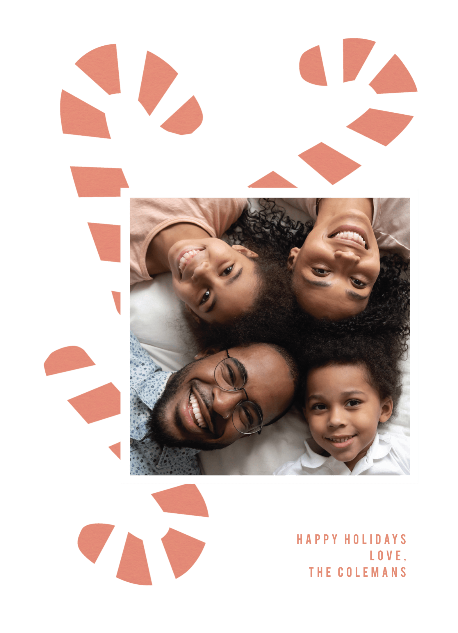 Celebrate the season with our 'Candy Cane Holiday Cutout' card. This customizable holiday card features a playful candy cane design, perfect for showcasing your favorite family photo. Easily personalize the text to send a warm greeting to loved ones.