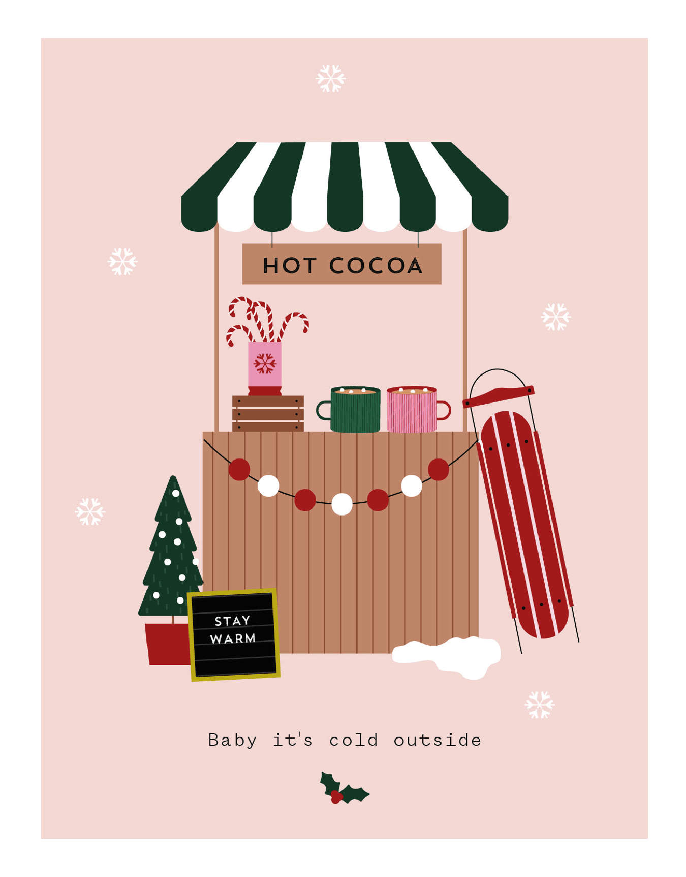 Warm up your holiday season with this charming 'Cocoa Stand' holiday card. Featuring a whimsical hot cocoa stand, festive decorations, and cozy winter vibes, it's perfect for spreading cheer and warmth to loved ones.