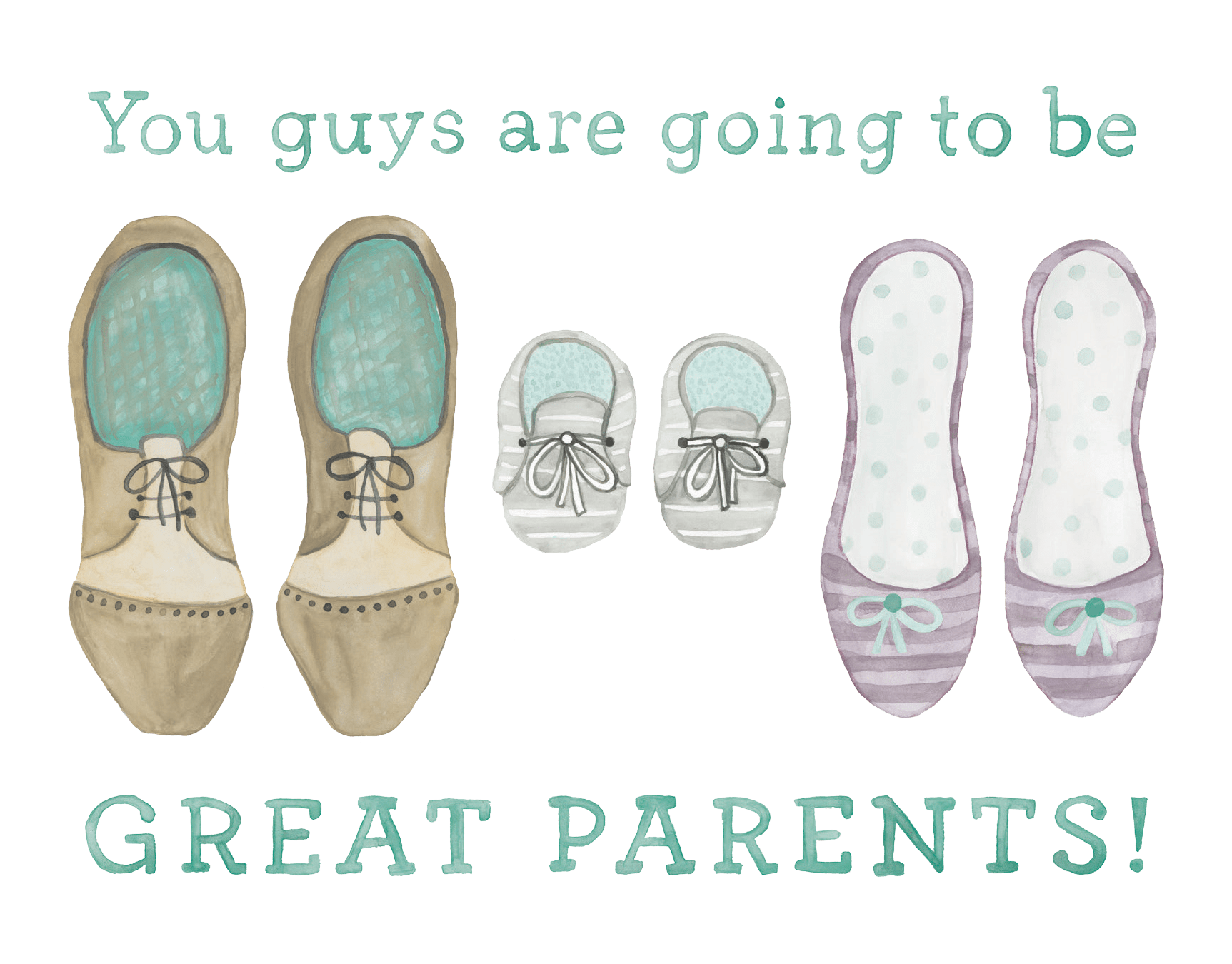 Celebrate the exciting journey of parenthood with this charming 'Great Parents' card. Featuring an adorable shoe illustration, it's the perfect way to congratulate expecting parents on their new adventure.