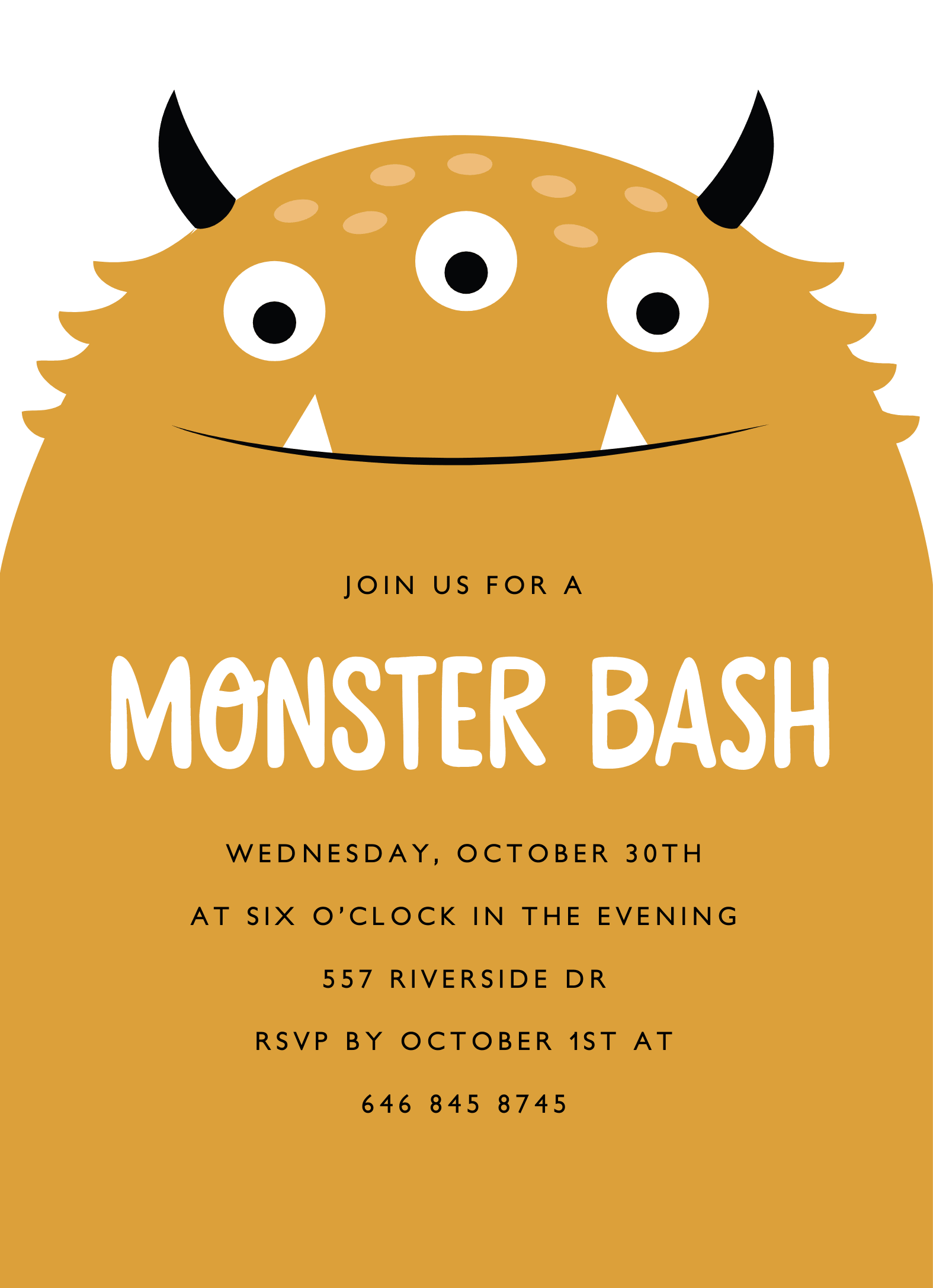 Set the spooky tone for your Halloween festivities with this whimsical 'Monster Bash' party invitation. Featuring an adorable monster design, this customizable card is perfect for inviting guests to celebrate in style. Personalize the text to make it uniquely yours!