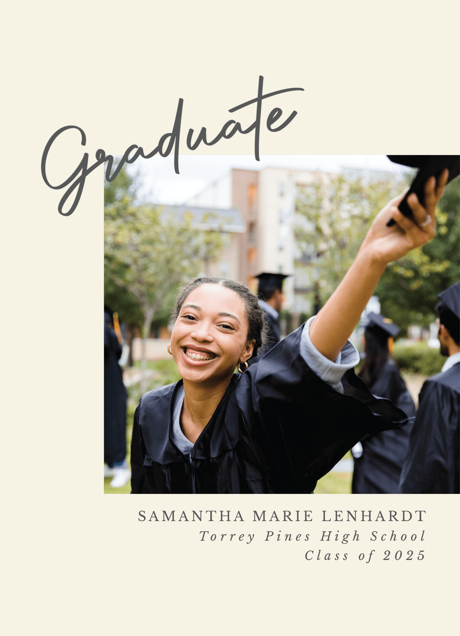 Celebrate academic achievements with our customizable 'Naturally' graduation announcement card. Add a personal touch by uploading your own photo and customizing the text to honor your graduate’s milestones. Perfect for sharing this special moment with loved ones.