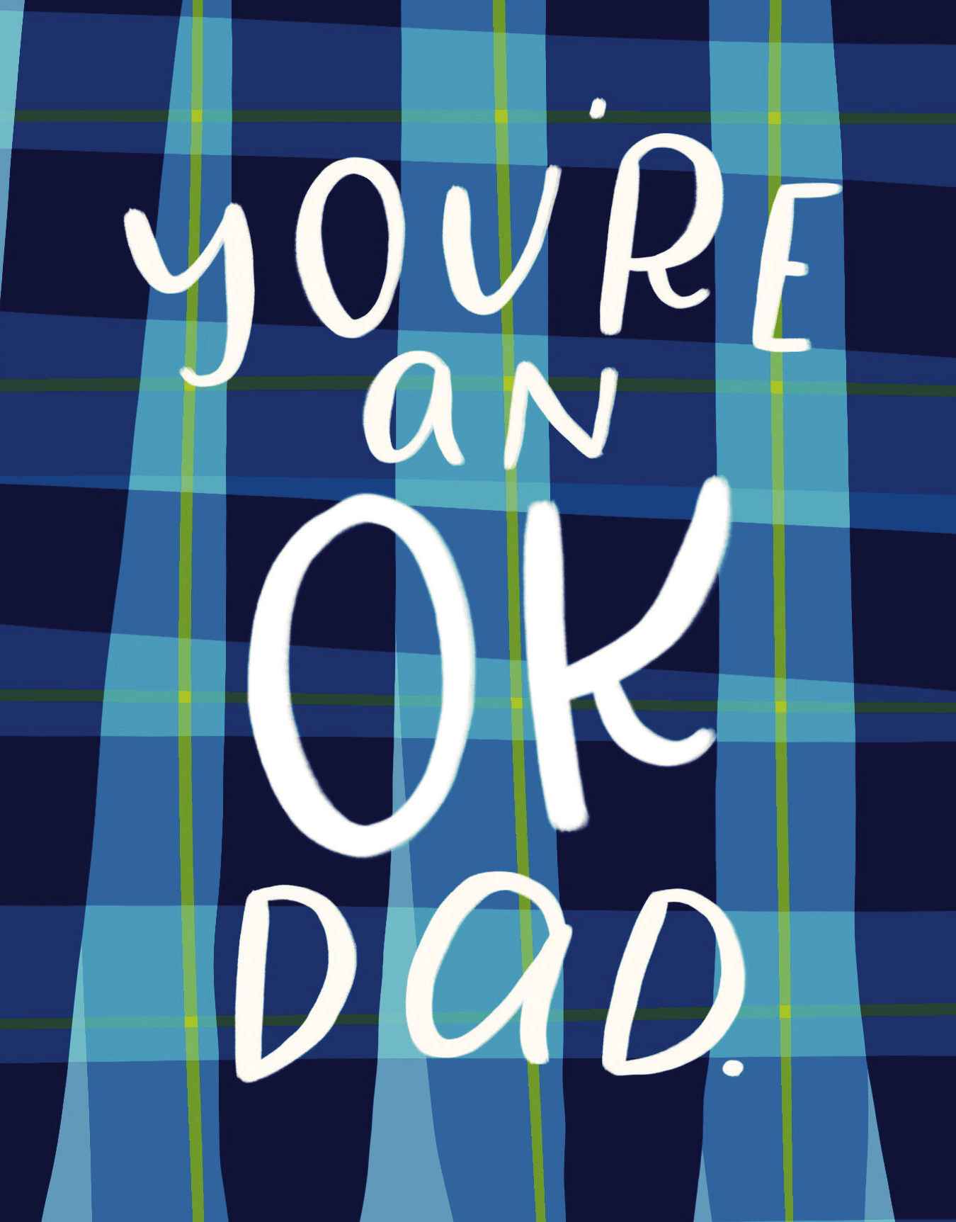 Celebrate Father's Day with a touch of humor using this playful 'You're an OK Dad' card. Perfect for dads with a sense of humor, featuring a trendy plaid background.